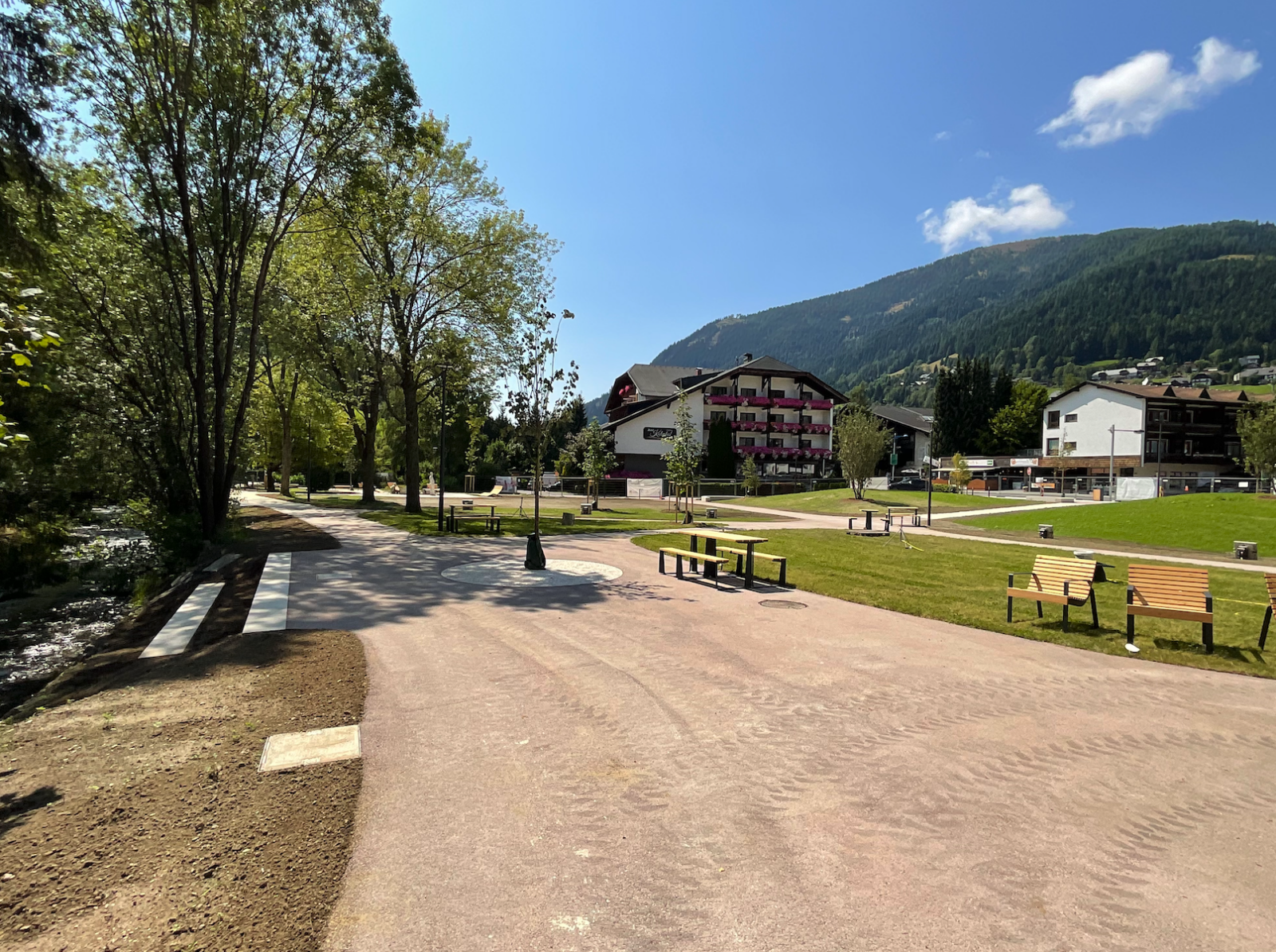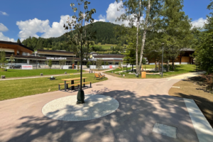 Im Mittelpunkt stand die Schaffung eines lebendigen Zentrums, das Einheimischen wie Gästen gleichermaßen Raum für Begegnung, Erholung und Freizeit bietet. Die Grünflächen wurden neu geordnet, Wege befestigt und offene Bereiche für Besucher zugänglich gemacht. Im Sommer lädt ein großzügiger Kinderspielplatz ein, während im Winter eine Eisfläche und ein Weihnachtsmarkt für besondere Erlebnisse sorgen.