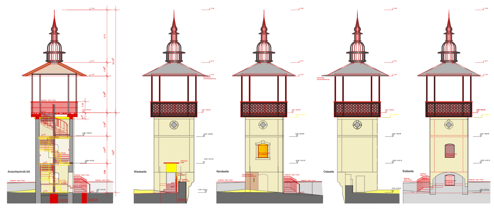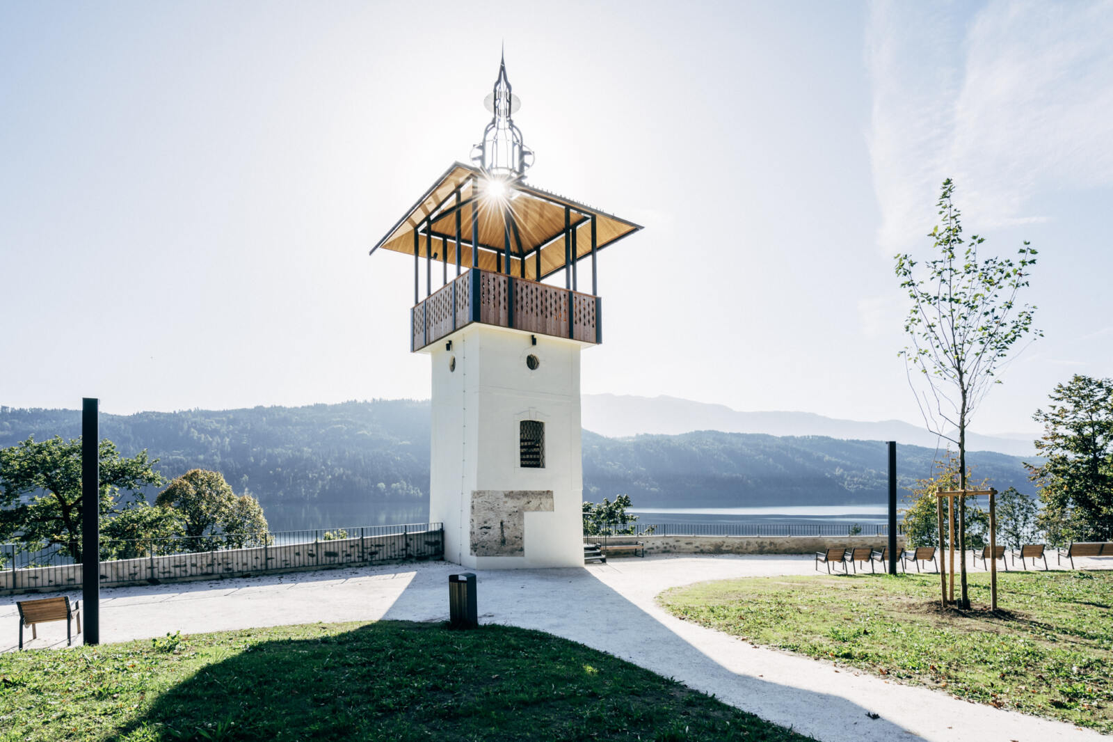 Im Zuge der Neugestaltung des Barbara-Egger-Parks wurde der historische Turm samt umgebener Mauerzüge saniert und für die Öffentlichkeit zugänglich gemacht. Die Fassadensanierung des Turms umfasste das Freilegen und Revitalisieren historischer Elemente sowie Ausbesserungsarbeiten und Neuverputz. Zudem wurde ein Fenster freigelegt und der Eingang angepasst. Im Inneren wurde die alte Holztreppe durch eine moderne Stahlkonstruktion mit Handlauf ersetzt, die bis zum neuen Aussichtsplateau hinaufführt. Dieses orientiert sich am historischen Vorbild von 1770 und wurde als überdachte Stahl-Rahmenkonstruktion umgesetzt. Ergänzend erfolgte die Sanierung der umliegenden Mauern inklusive Schutzmaßnahmen und Absturzsicherung.