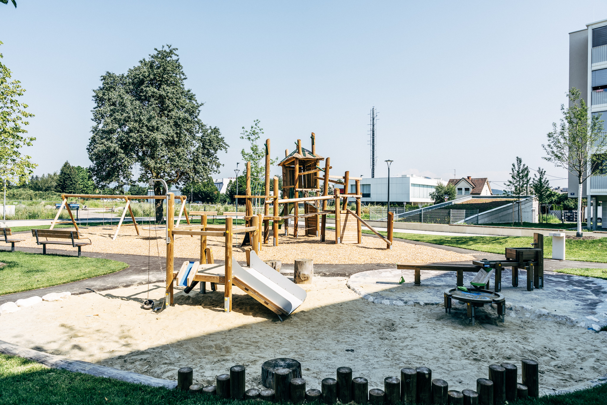 Im Quartierszentrum hi Harbach entstand neben der neugestalteten Parkanlage ein vielseitiger Kinderspielplatz.